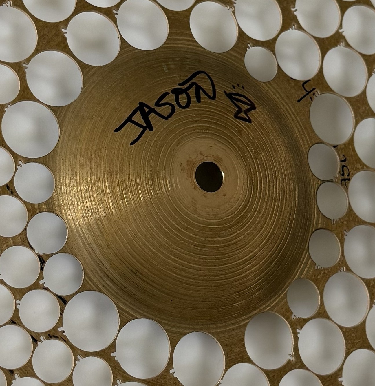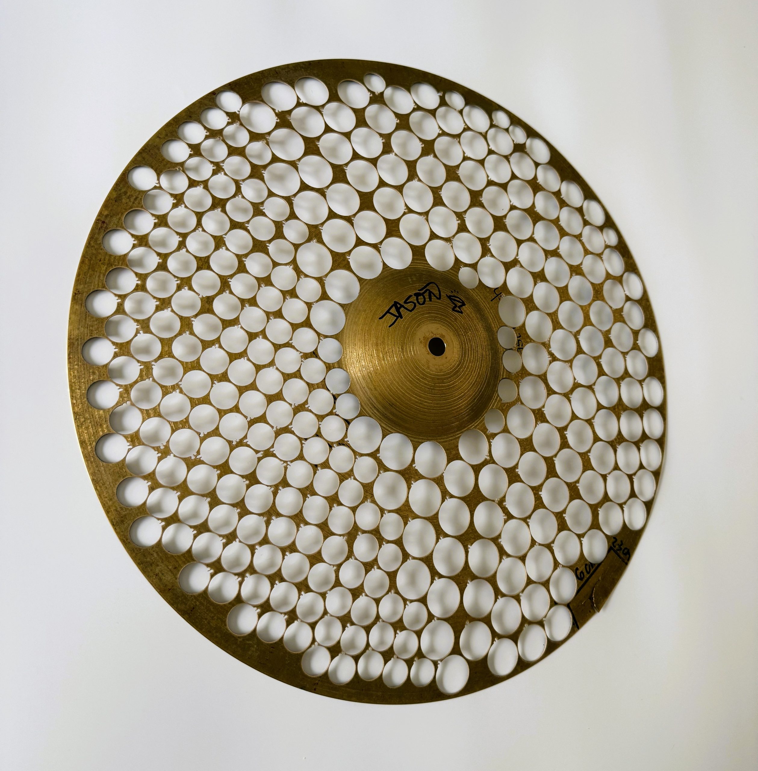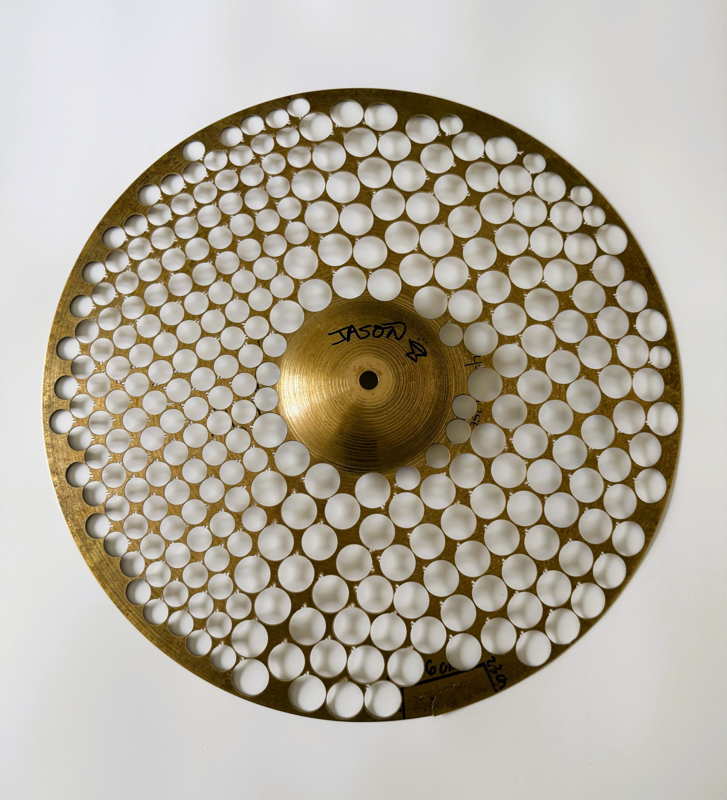 This one-of-a-kind 18″ crash cymbal was used by SCI’s Jason Hann during all shows spanning 2018-2022. Roughly 200 total shows! Alas, the cymbal (bravely) succumbed to its injuries in the line of duty and now YOU can own the remainder! We were able to cut & manufacture 137 necklaces & 74 earring pairs from the cymbal. We salvaged the “skeleton” (AKA scrap metal) for auction to raise additional funds for the Sweet Relief Musicians Fund! 50% of the winning bid price is reserved for Sweet Relief.